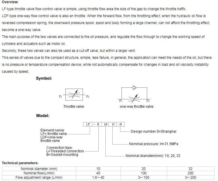 LF type throttle valve and LDF type one-way throttle valve